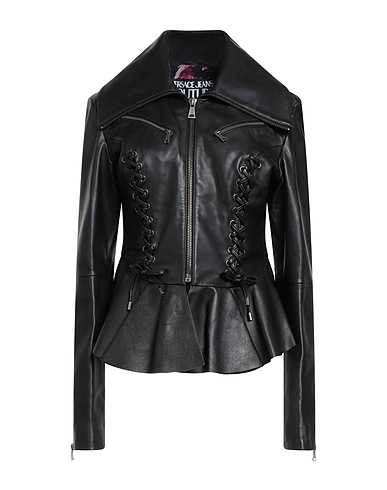 バイカージャケット / レザー / ブランドロゴ / 装飾付き素材 / 無地(装飾付き) / タートルネック / 長袖 / 袖口にファスナーあり / 裏地あり / ファスナーで開閉 / ポケットなし / フレアスタイルの裾 / 繊維でない動物性素材使用 / 水洗い不可 / 漂白剤使用不可 / 乾燥機使用不可 / アイロン不可