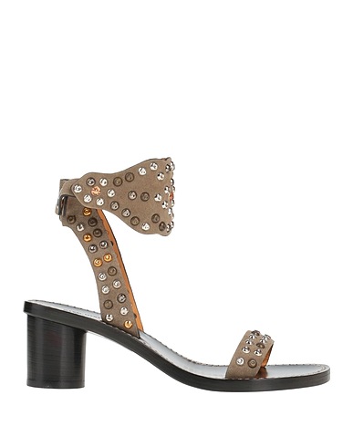 サンダル / ジュートソール / 無地(装飾付き) / クリスタル / スタッズ付き / スナップボタンで開閉 / ラウンドトゥ / ジェオメトリックヒール / 内側:レザー / レザーソール / 繊維でない動物性素材使用 / 小さめのサイズ感