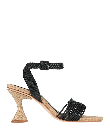 サンダル(アンクルストラップ付き) / レザー / 無地 / 装飾なし / 内側:レザー / 足首にバックル付きストラップ / ラウンドトゥ / ジェオメトリックヒール / ロープヒール / レザー&ラバーソール / 繊維でない動物性素材使用