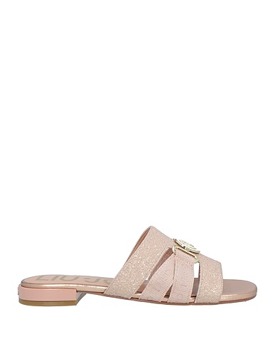 合成皮革 / ラメ加工 / ブランドロゴ / メタルの装飾あり / 無地(装飾付き) / 裏地あり / スクエアトゥ / フラット(ヒールなし) / ラバーソール / スライドサンダル
