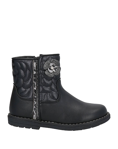 合成皮革 / グリッター素材 / フラワーの装飾あり / 無地(装飾付き) / 布地ライニング / レースアップスタイル / ラウンドトゥ / フラット(ヒールなし) / 溝入りラバーソール / ショートブーツ