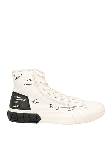 キャンバス素材 / レザー / ブランドロゴ / バイカラーデザイン / 布地ライニング / レースアップスタイル / ラウンドトゥ / フラット(ヒールなし) / 溝入りラバーソール / 繊維でない動物性素材使用 / ハイカットスニーカー