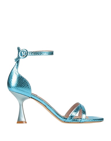 合成皮革 / ラメ加工 / 装飾なし / 無地 / 裏面: レザー / アンクルストラップあり / ラウンドトゥ / ジェオメトリックヒール / カバードヒール / ラバーソール / 繊維でない動物性素材使用 / サンダル(アンクルストラップ付き)