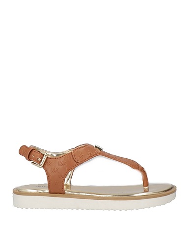 トングサンダル(アンクルストラップ付き) / 合成皮革 / 無地 / ブランドロゴ / 裏地あり / バックル開閉 / ラウンドトゥ / フラット(ヒールなし) / 溝入りラバーソール