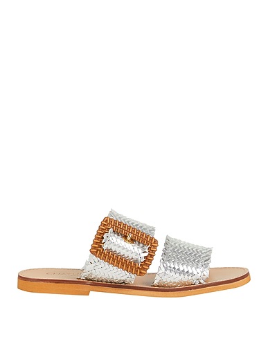 サンダル / レザー / メタリック加工 / 無地 / 装飾なし / 内側:レザー / バックル開閉 / ラウンドトゥ / フラット(ヒールなし) / ラバーソール / 繊維でない動物性素材使用