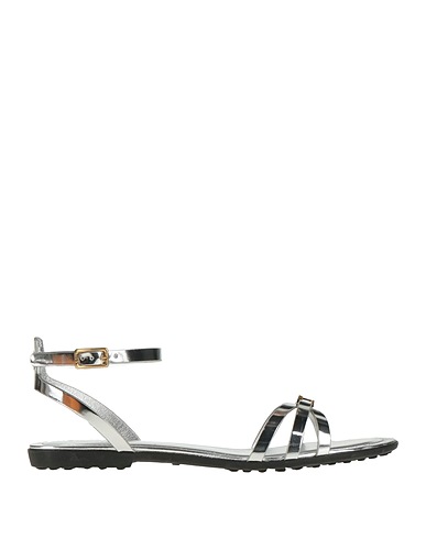 レザー / メタリック加工 / 装飾なし / 無地 / 内側:レザー / 足首にバックル付きストラップ / ラウンドトゥ / フラット(ヒールなし) / 溝入りラバーソール / 繊維でない動物性素材使用 / サンダル(アンクルストラップ付き)