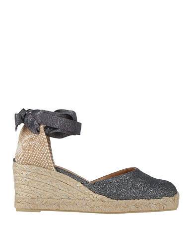 エスパドリーユ(サンダルスタイル) / キャンバス素材 / ラメ素材 / マルチカラーデザイン / 装飾なし / 足首にストリング / ラウンドトゥ / ウェッジソール / ラバーソール / 内側:レザー / 繊維でない動物性素材使用