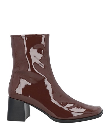 合成皮革 / エナメルエフェクト / 装飾なし / 無地 / 裏地あり / ファスナーで開閉 / スクエアトゥ / スクエアヒール / ラバーソール / ショートブーツ