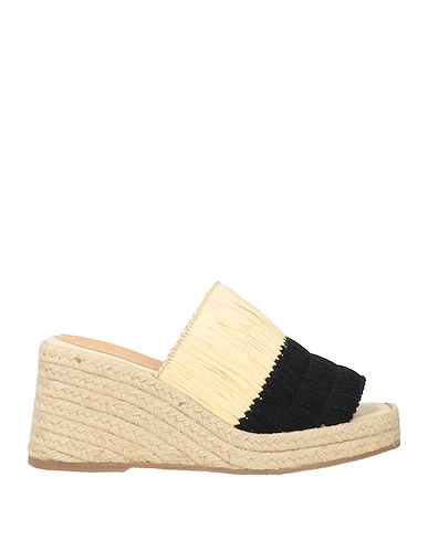 編み込み / 指定外繊維(ラフィア) / 装飾なし / バイカラーデザイン / 内側:レザー / ラウンドトゥ / ウェッジヒール / ロープウェッジソール / ラバーソール / 繊維でない動物性素材使用 / エスパドリーユ(サンダルスタイル)