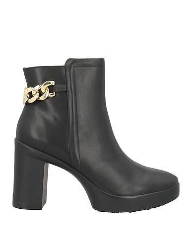 ショートブーツ / レザー / 無地(装飾付き) / 装飾付き素材 / プラットフォーム / 内側:レザー / ファスナーで開閉 / ラウンドトゥ / スクエアヒール / 溝入りラバーソール / 繊維でない動物性素材使用