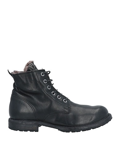 ショートレースアップブーツ / ツヤ加工したレザー / 無地 / 装飾なし / 内側:レザー / レースアップ / ラウンドトゥ / フラット(ヒールなし) / 溝入りラバーソール / 繊維でない動物性素材使用