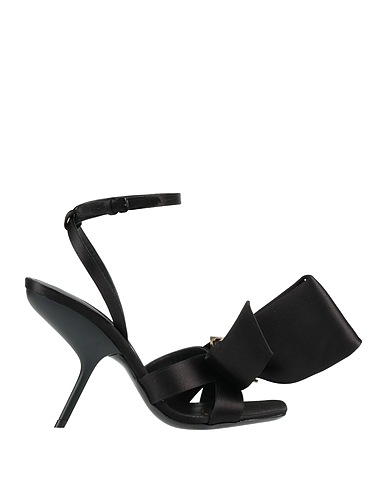 サテン素材 / ブランドロゴ / 無地 / 内側:レザー / 足首にバックル付きストラップ / スクエアトゥ / ピンヒール / レザーソール / 繊維でない動物性素材使用 / サンダル(アンクルストラップ付き)