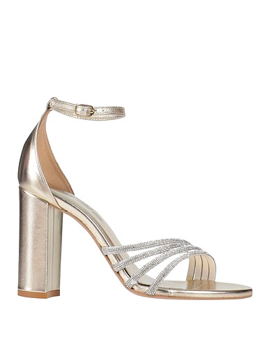 レザー / メタリック加工 / 装飾なし / 無地 / 内側:レザー / 足首にバックル付きストラップ / スクエアトゥ / スクエアヒール / ラバーソール / 繊維でない動物性素材使用 / サンダル(アンクルストラップ付き)