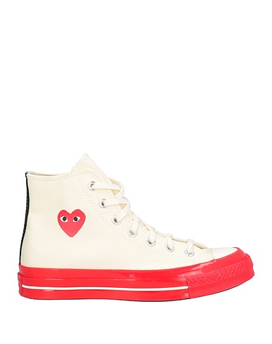キャンバス素材 / ブランドロゴ / プリントあり / バイカラーデザイン / 裏地なし / レースアップ / ラウンドトゥ / フラット(ヒールなし) / 溝入りラバーソール / ハイカットスニーカー