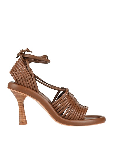 サンダル / レザー / 無地 / 装飾なし / 内側:レザー / 足首にストリング / ラウンドトゥ / 砂時計型ヒール / レザー&ラバーソール / 繊維でない動物性素材使用