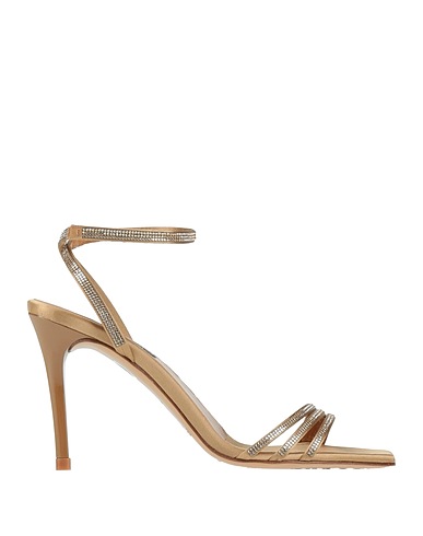 サテン素材 / クリスタル / 無地(装飾付き) / 内側:レザー / 足首にストリング / スクエアトゥ / スティレットヒール / レザー&ラバーソール / 繊維でない動物性素材使用 / サンダル(アンクルストラップ付き)