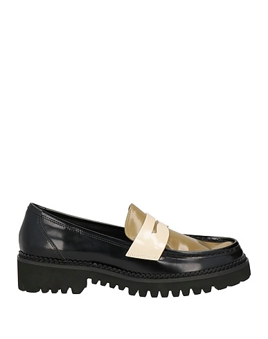 ツヤ加工したレザー / 装飾なし / マルチカラーデザイン / 内側:レザー / ラウンドトゥ / スクエアヒール / ラグソール / 繊維でない動物性素材使用 / ペニーローファー
