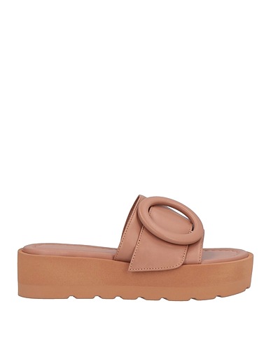 スライドサンダル / レザー / 無地 / 装飾付き素材 / 内側:レザー / ラウンドトゥ / ウェッジヒール / 溝入りラバーソール / 繊維でない動物性素材使用