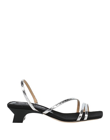 サンダル(アンクルストラップ付き) / テクスチャードレザー / メタリック加工 / 無地 / 装飾なし / 内側:レザー / 伸縮性のあるインサート / スクエアトゥ / ジェオメトリックヒール / プラスチックヒール / レザーソール / 繊維でない動物性素材使用