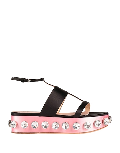 サンダル(アンクルストラップ付き) / サテン素材 / バイカラーデザイン / クリスタル / 内側:レザー / 足首にバックル付きストラップ / ラウンドトゥ / フラット(ヒールなし) / フラットフォーム / 繊維でない動物性素材使用