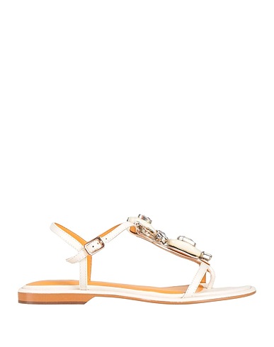 トングサンダル(アンクルストラップ付き) / レザー / 無地(装飾付き) / クリスタル / バックル付き / 内側:レザー / 足首にバックル付きストラップ / ラウンドトゥ / フラット(ヒールなし) / ラバーソール / 繊維でない動物性素材使用
