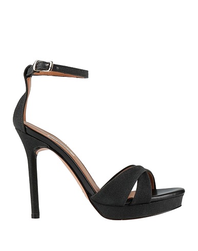 サンダル(アンクルストラップ付き) / 編み込み / メタリック加工 / 無地 / 装飾なし / 内側:レザー / 足首にバックル付きストラップ / ラウンドトゥ / ジェオメトリックヒール / レザーソール / 繊維でない動物性素材使用