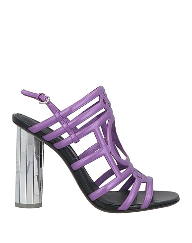 サンダル(アンクルストラップ付き) / レザー / メタリック加工 / 無地 / ブランドロゴ / 内側:レザー / バックル開閉 / スクエアトゥ / ジェオメトリックヒール / レザーソール / 繊維でない動物性素材使用
