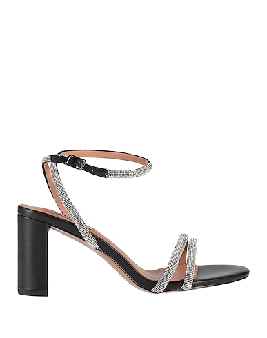 サンダル(アンクルストラップ付き) / 合成皮革 / 無地(装飾付き) / クリスタル / 内側:レザー / バックル開閉 / ラウンドトゥ / スクエアヒール / ラバーソール / 繊維でない動物性素材使用