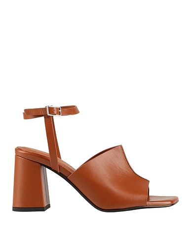 サンダル(アンクルストラップ付き) / レザー / 無地 / 装飾なし / 内側:レザー / 足首にバックル付きストラップ / スクエアトゥ / スクエアヒール / レザーソール / 繊維でない動物性素材使用 / 大きめのサイズ感
