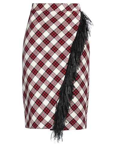 ツイード素材 / フリンジ / タータンチェック柄 / 裏地あり / ファスナー付き / ポケットなし / ストレッチ素材 / ペンシルモデル