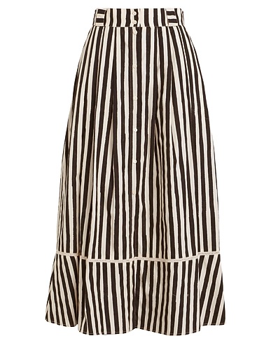 ポプリン素材 / 刺繍入り / ストライプ / ベルトループあり / ボタンで開閉 / ポケット複数あり / 洗濯機洗いまたはドライクリーニング可 / 漂白剤使用不可 / 乾燥機使用不可 / フレア スカート