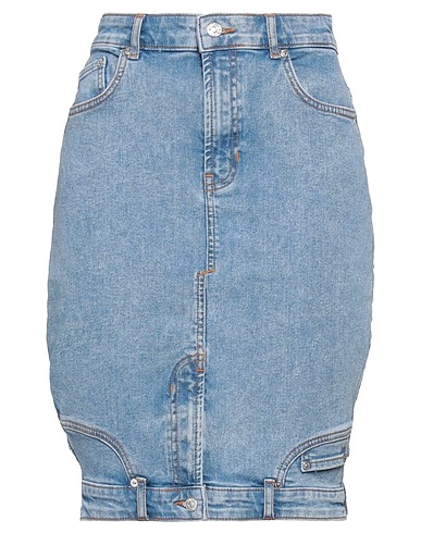 デニム素材 / 色あせ加工 / ブランドロゴ / 無地 / ライトウォッシュ / 裏地なし / ファスナーで開閉 / 1つボタン / ポケット複数あり / 洗濯機で洗濯できます / 漂白剤使用不可 / 乾燥機使用不可 / チューブスカート / このブランドのアイテムは小さめに作られています