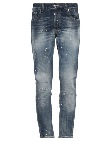 テーパード ジーンズ / デニム素材 / ディストレスド加工 / ストレッチファブリック / 絞り染め / ブランドロゴ / ダークウォッシュ / ミディアムウエスト / レギュラーフィット / ボタンで開閉 / ポケット5つ / 洗濯機洗いまたはドライクリーニング可 / 漂白剤使用不可 / 乾燥機使用不可 / クロップド