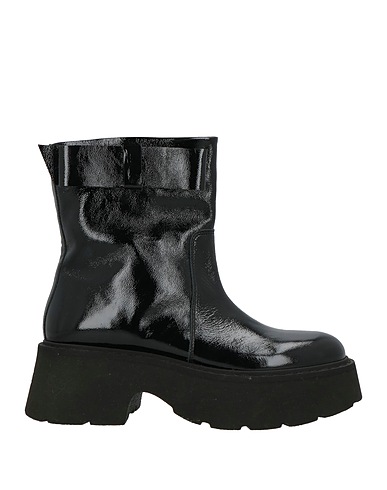 チャンキーブーツ / パテントレザー / 無地(装飾付き) / リボンあり / 内側:レザー / ラウンドトゥ / スクエアヒール / ラバーヒール / ラバーソール / 繊維でない動物性素材使用 / 小さめのサイズ感