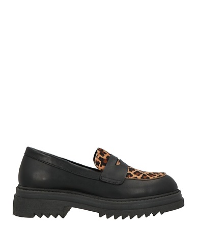 チャンキーモカシン / レザー / カーフヘア / ヒョウ柄 / 装飾なし / 内側:レザー / ラウンドトゥ / スクエアヒール / ラグソール / 繊維でない動物性素材使用