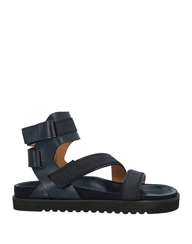サンダル(アンクルストラップ付き) / レザー / 無地(装飾付き) / グログランドリム / 内側:レザー / Velcro(マジックテープ)で開閉 / ラウンドトゥ / フラット(ヒールなし) / ラバーソール / 繊維でない動物性素材使用