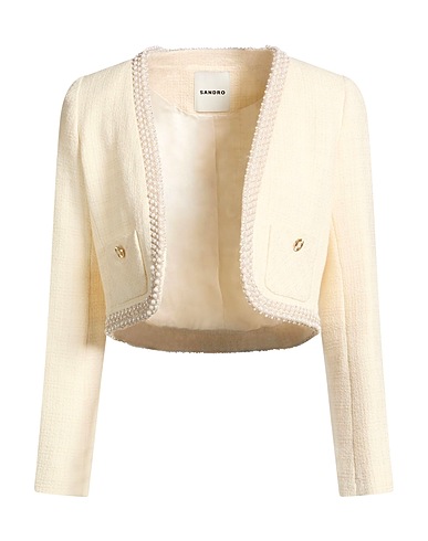 ボレロ / ツイード素材 / ビーズ / パイピングトリム / ボタン装飾付き / 無地(装飾付き) / 深く開いたネックライン / 長袖 / 裏地あり / パッチポケット / ドライクリーニングできます / 乾燥機使用不可 / 動きやすくフォーマルでオフィススタイルとしてもおすすめ