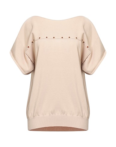 ニット素材 / 薄手ニット素材 / メタルの装飾あり / 無地(装飾付き) / ワイドネック / 半袖 / ポケットなし / 手洗いまたはドライクリーニング / 乾燥機使用不可 / 漂白剤使用不可 / 小さめのサイズ感