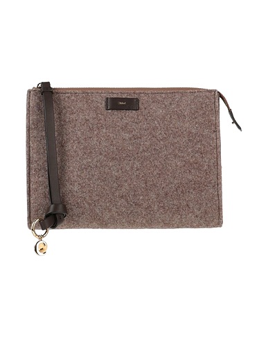 ポシェット-クラッチ / フランネル素材 / 無地 / ブランドロゴ / ファスナーで開閉 / 裏地あり / 内ポケット付き / シングルハンドル / ミディアム / 繊維でない動物性素材使用