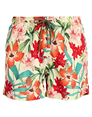 機能性素材 / ハワイアン柄 / 装飾なし / ドローストリングで開閉 / インナーパンツ付き / 洗濯機で洗濯できます / 漂白剤使用不可 / 乾燥機使用不可