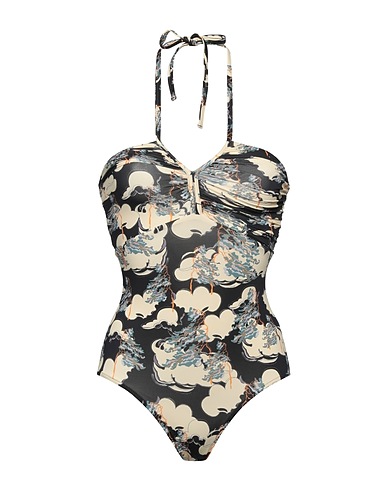 スイムスーツ / 合成繊維ジャージー素材 / マルチカラーデザイン / ギャザー / ストリングで開閉 / ストレッチ素材 / 手洗いができます / 漂白剤使用不可 / 乾燥機使用不可 / アイロン不可