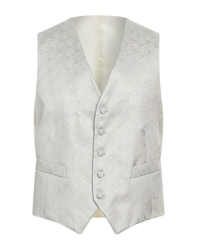 ジャカード素材 / 装飾なし / ペイズリー柄 / Vネック / シングルブレスト / ノースリーブ / 裏地あり / ボタン開閉 / 胸ポケット2つあり / ボタン開閉のジレ、バックベルト付き