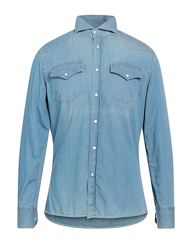 데님, 바랜 효과, 장식 부착 없음, 솔리드 컬러, 미디엄 워싱, 클래식 칼라, 롱 슬리브, 버튼 커프스, 스냅버튼, 1 버튼, 더블 포켓