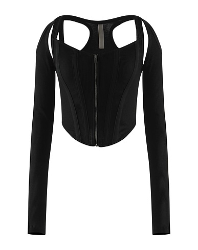 탑, 저지, 솔리드 컬러, 장식 부착 없음, 와이드 네크라인, 롱 슬리브, 지퍼 여밈, 스트레치