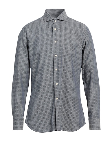 슬림 셔츠, 우븐, 기하학 패턴, 장식 부착 없음, 클래식 칼라, 롱 슬리브, 버튼 커프스, 버튼 여밈