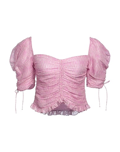 크롭 탑, 크레이프, 투톤 패턴, 개더 디테일, 스위트하트 네크라인, 쇼트 슬리브, 안감있음, 지퍼 여밈