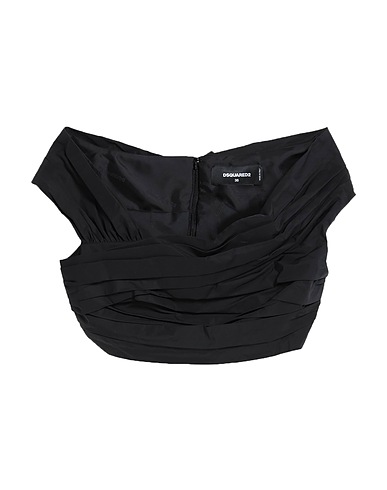 크롭 탑, 테크니컬 패브릭, 솔리드 컬러, 드레이프, 와이드 네크라인, 슬리브리스, 안감있음, 지퍼 여밈