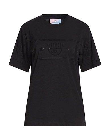패턴 티셔츠, 저지, 장식 디테일 솔리드 컬러, 브랜드 로고, 크리스탈, 크루넥, 쇼트 슬리브, 세탁기로 세탁, 건조기 사용불가