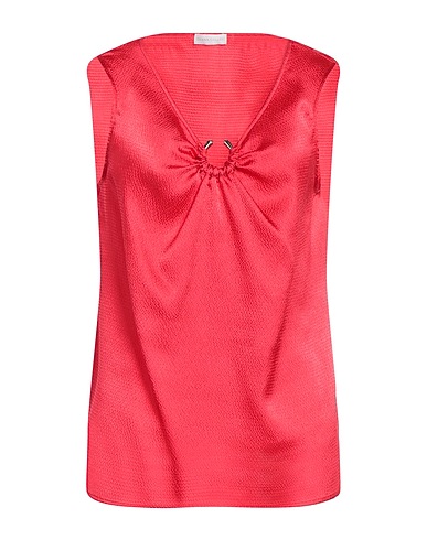 새틴, 메탈 디테일, 장식 디테일 솔리드 컬러, v 네크라인, 슬리브리스, 포켓 없음, 사이드 슬릿 헴라인, 탑