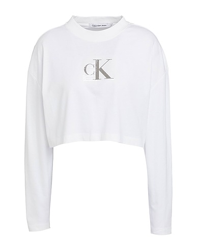 저지, 브랜드 로고, 시퀸, 장식 디테일 솔리드 컬러, 크루넥, 롱 슬리브, 크롭 티